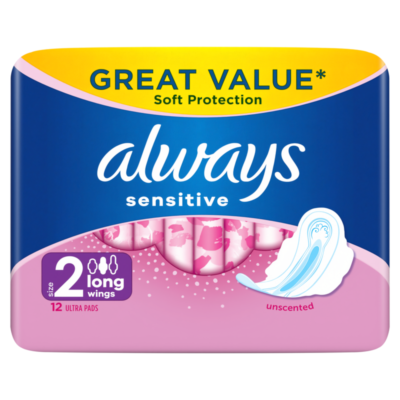 Always Sensitive Long Ultra Size 2 Sanitary Towels Wings 12 Pads