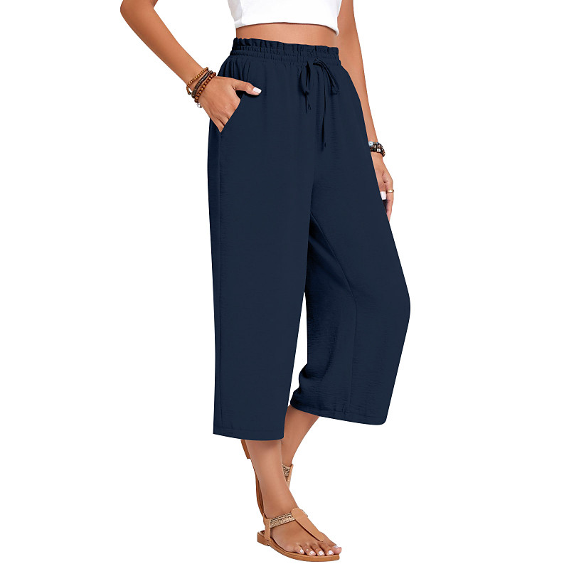 Women's Culottes Wide Leg Chinos Streetwear Casual Full Length Medium Waist Plain Pocket Elastic Waist Comfortable Inelastic Outdoor Vacation Daily Apricot Grey Navy Black Fall Loose Fit
