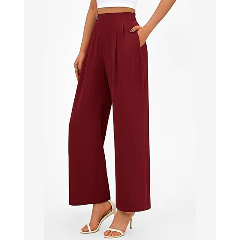 Women's Wide Leg Slacks Streetwear Casual Full Length Natural Plain Elastic Waist Comfortable Outdoor Vacation Holiday Maroon claret Ash Dark-Gray Fall Regular Fit