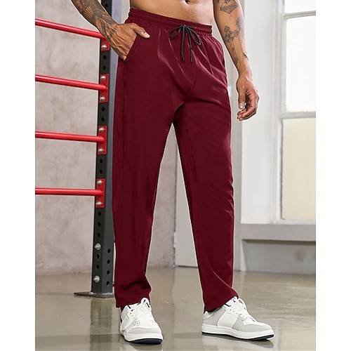 Herren Sporthose Hose Freizeithose Kordelzug Tasche Elastischer Bund Einfach Komfort Sport im Freien Täglich Mode Lässig Schwarz Wein Mikroelastisch