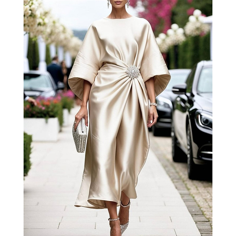 Women's Midi Dress Satin Dress Party Dress Sheath Dress Wrap Dress Elegant Modern Evening Party Party Special Occasion Regular Fit Plain Long Sleeve V Neck White Pink Wine Khaki Spring Fall