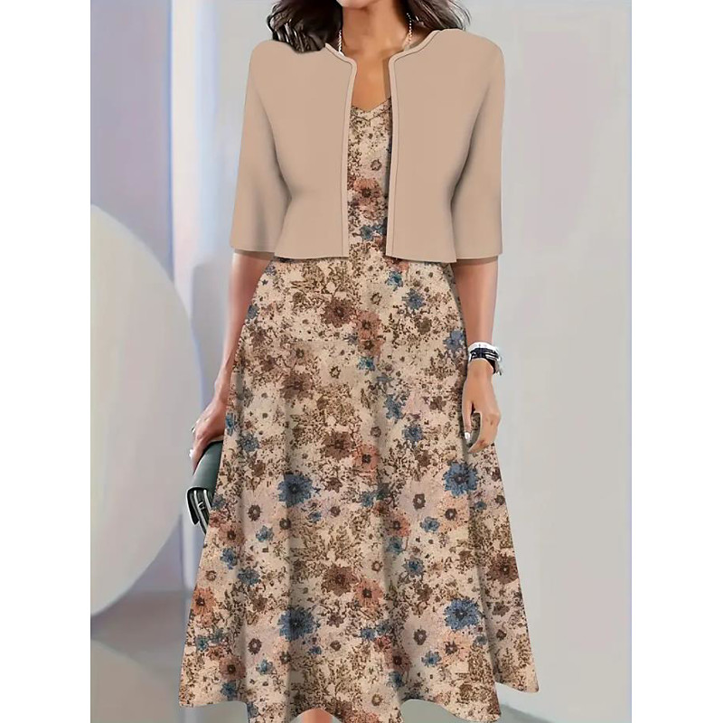 Women's Dress Set A Line Dress Casual Semi Formal Floral Graphic Print Midi Dress Half Sleeve Crew Neck Vacation Date White Blue Green Summer Spring Regular Fit
