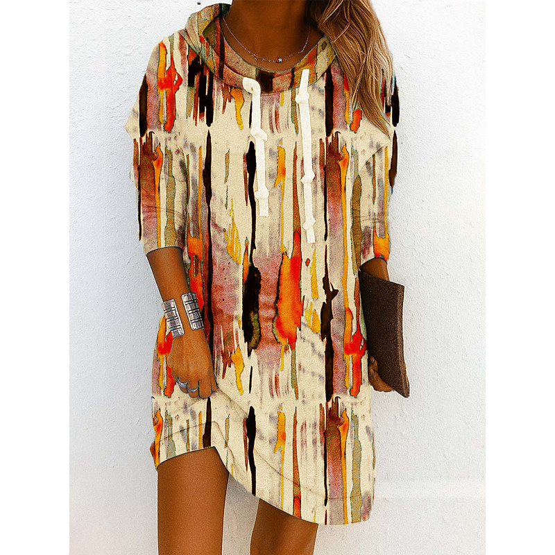 Women's Mini Dress Sheath Dress Shift Dress Party Casual Boho Outdoor Home Sport Loose Fit Floral Graphic Long Sleeve Hooded Yellow Pink Purple Green Spring Fall Winter