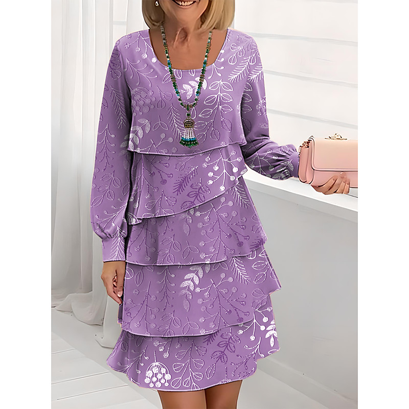 Women's Mini Dress A Line Dress Layered Dress Stylish Casual Formal Regular Fit Graphic Leaf Long Sleeve Crew Neck Scoop Neck Light Green Pink Purple Summer Spring Fall Winter