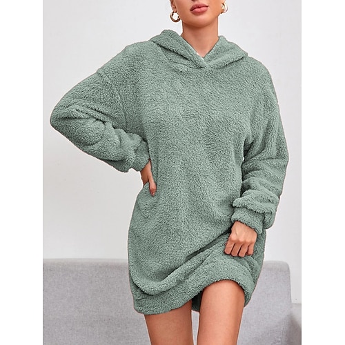 Per donna Abito Midi Abito in maglia Abito con Cappuccio Moda Moderno Quotidiano Vacanza Weekend Vestibilità regolare Semplice Manica Lunga Con Cappuccio Rosa Verde militare Cachi Inverno Autunno