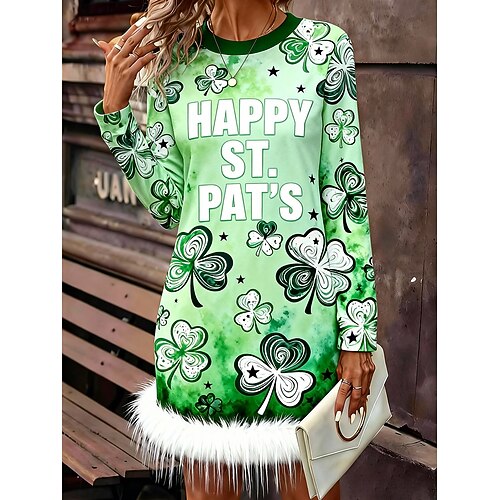 Giorno di San Patrizio Per donna Mini Abito Vestito Casual Abito Invernale Tubino Moda All'aperto Vacanza Giorno di San Patrizio Vestibilità regolare Trifoglio Manica Lunga Girocollo Verde Primavera