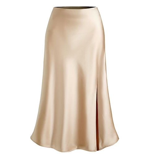 Per donna Aderente Elegante Moda Casual Midi Vita Alta Gonne Semplice Patchwork Con Spacco Micro-elastico Feste Uscire Nero Champagne Verde militare Marrone Estate Spandex Poliestere