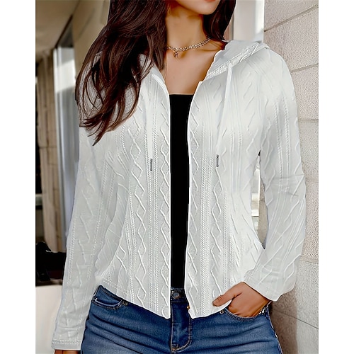 Per donna Felpe con cappuccio Semplice Elegante Caldo Moda Manica Lunga Con Cappuccio Top Regolari Casa Lavoro Streetwear Coulisse Cerniera Nero Bianco Vino Caffè Estate Primavera