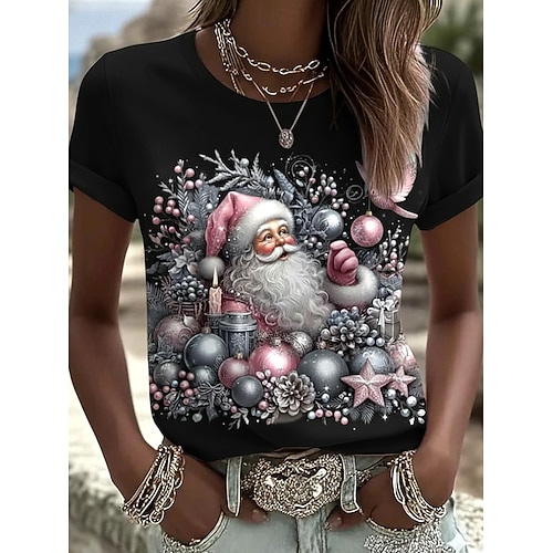 Natale Per donna Maglietta Grafico Natale Vintage Elegante Classico Manica Corta Girocollo Top Regolari Quotidiano Stampato Blu Nero Bianco Rosa Rosso Estate Primavera Autunno Inverno