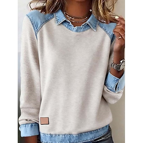 Per donna Blusa Blocco di colori Elegante Casual Manica Lunga Colletto a Camicia Top Regolari Quotidiano Patchwork Nero Bianco Giallo Rosso Arancione Primavera Autunno Inverno