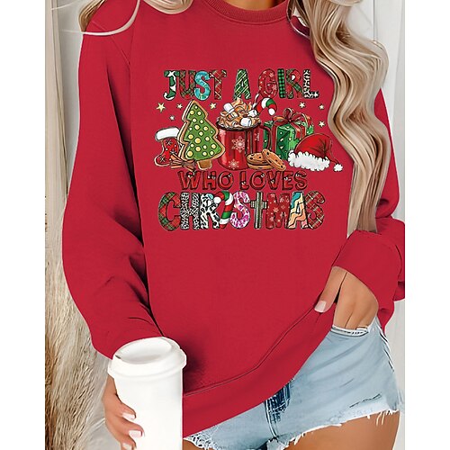 Natale Per donna Blusa Stampato Albero di Natale Casual Manica Lunga Girocollo Top Regolari Quotidiano Ferie Nero Bianco Rosa Rosso Arancione Autunno Inverno
