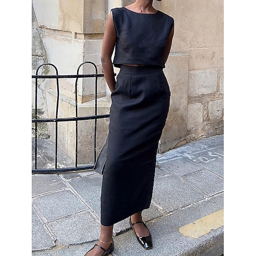Per donna Set di Pantaloni Finto cotone e lino Senza Maniche Girocollo Semplice Elegante Moda Streetwear Casuale Quotidiano All'aperto Blu Nero Arancione Estate Vestibilità regolare