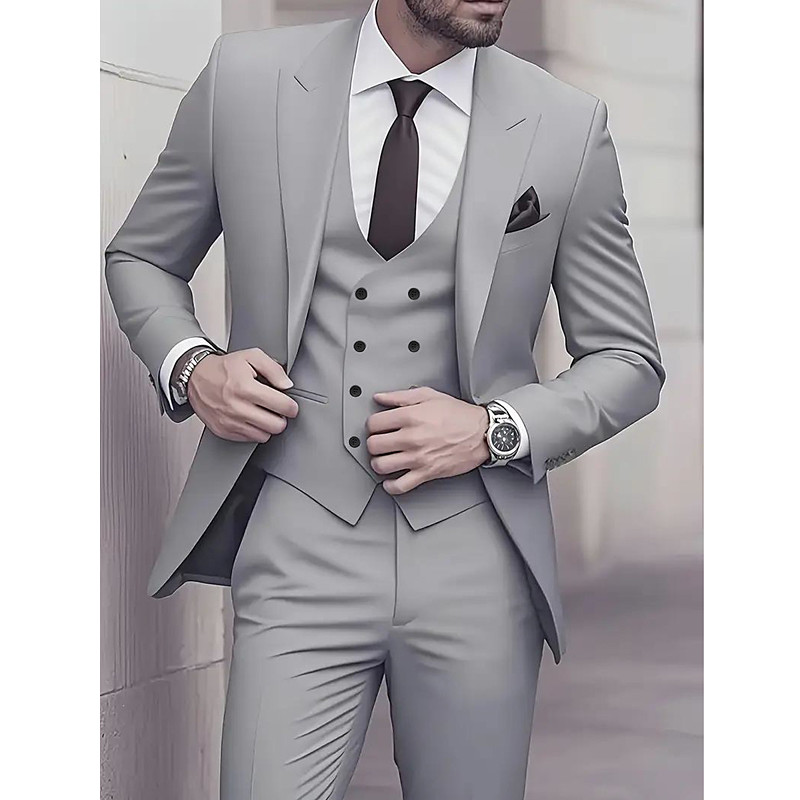 Men's Wedding Casual Business Suits Notch Lapel Black Light Grey Daily Formal Solid Colored Slim Fit 3 Piece Single Breasted One-button