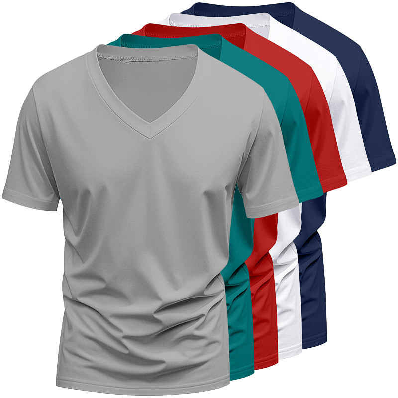 5PCS Men's T Shirt Tee Top Short Sleeve Short Sleeves V Neck Summer All Seasons Solid Color Plain Basic Casual 5-Piece Multi-pack Vacation Street Casual White Top Tee for Men
