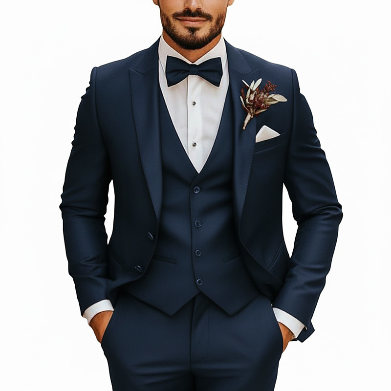 Men's Fall Wedding Party Suits Peaked Lapel Black Burgundy Classic Business Formal Solid Colored Tailored Fit 3 Piece Single Breasted Two-buttons