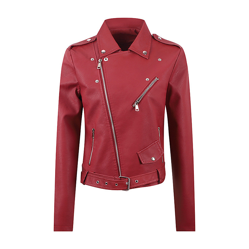 Women's Faux Leather Jacket Biker Jacket Warm Comfortable Zipper Pocket Casual Solid Color Vacation Street Casual Daily Wear Regular Turndown Regular Fit Long Sleeve Outerwear Black Wine Chocolate