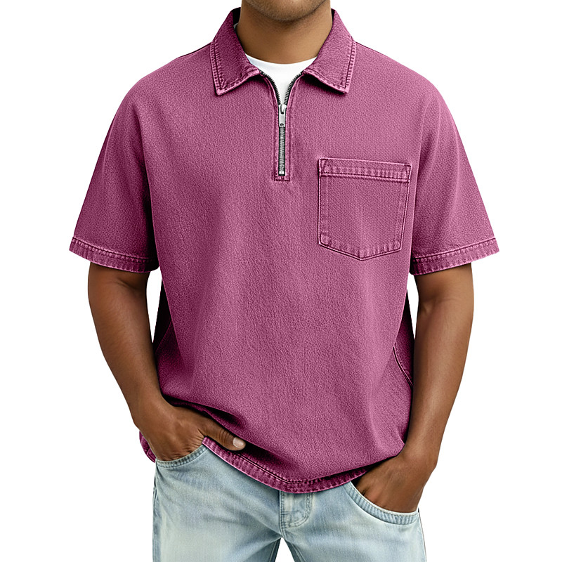 Men's Cotton Polo Shirt Golf Shirt Daily Wear Date Quarter Zip Short Sleeve Fashion Basic Plain Zipper Pocket Summer Spring Spring Summer Regular Fit Army Green Black Pink Navy Blue Purple Brown