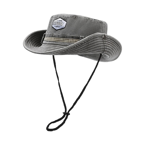 Cappello da pesca da uomo per esterni con cinturino regolabile sotto il mento, tessuto in tela di cotone, classica tesa larga arrotolabile, adatto per attività estive, escursionismo e viaggi