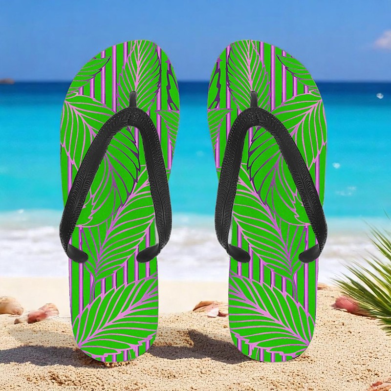 Men's Blue Leaf Printed Flip Flops – Tropical Stylish Style for Beach Vacations, Island Hopping Beachside Dinners