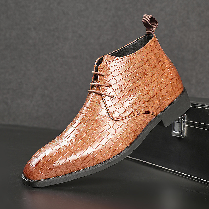Men's Red Crocodile Pattern Faux Leather Ankle Boots – Fashion Lace-Up Dress Shoes for Parties, Nightlife and Special Occasions
