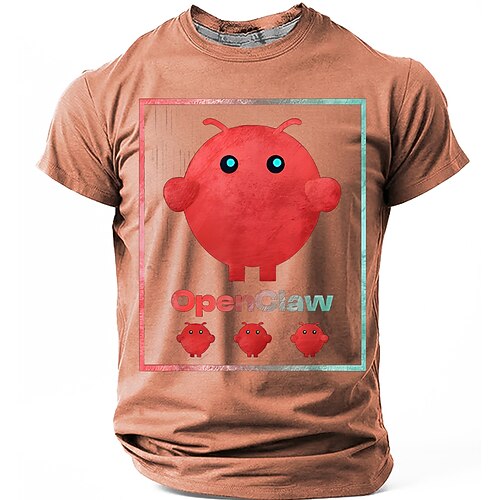 Herren-T-Shirt mit Maskottchen-Roboter-Openclaw-KI-Hummer-Tech-Geek-Programmierer-KI-Agent-Motiv, Grafik, normale Passform, Kurzarm, Rundhalsausschnitt, Freizeitkleidung, Designer-Bekleidung, Größen: