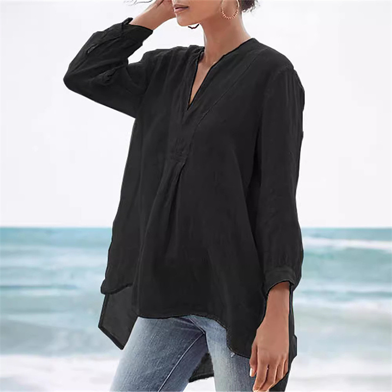 Women's Shirt Faux Cotton Linen Plain Daily Stylish Basic 3/4 Length Sleeve V Neck Regular Tops Daily Work Holiday Black White Beige Spring Fall