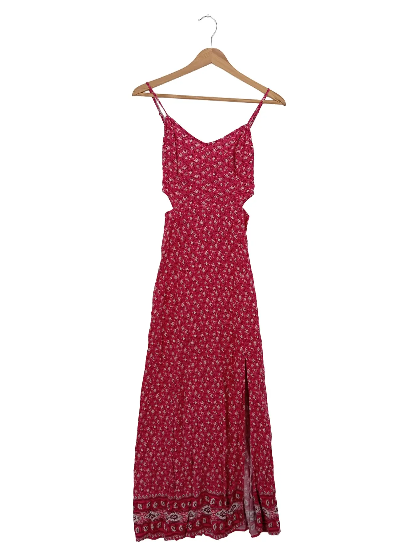 HOLLISTER Maxikleid mit Cut-Outs, Größe XS, rot, Bohemian-Stil