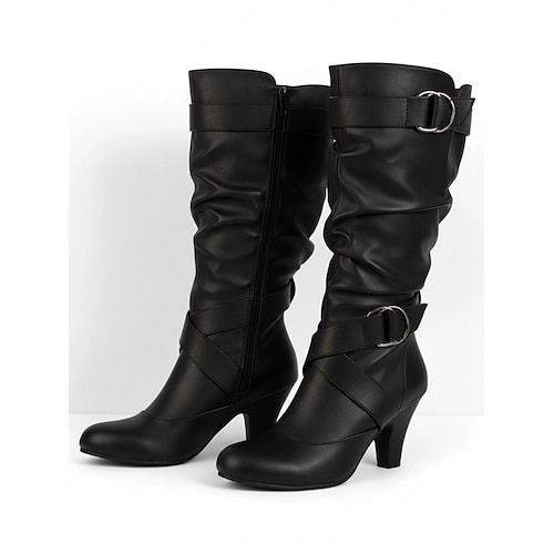 stivali da equitazione casual da donna in finta pelle scamosciata color cachi con design ampio e fibbia ad anello laterale, comodi stivali da equitazione con tacco basso per l'abbigliamento outdoor