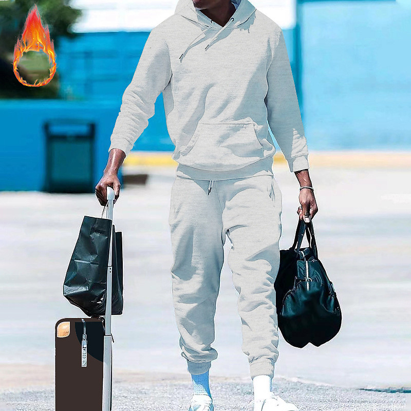 Men's 2-Piece Fleece Tracksuit Set - Heavyweight Hoodie and Joggers Sweatshirt Outfit Solid Color Sports Streetwear with Pockets