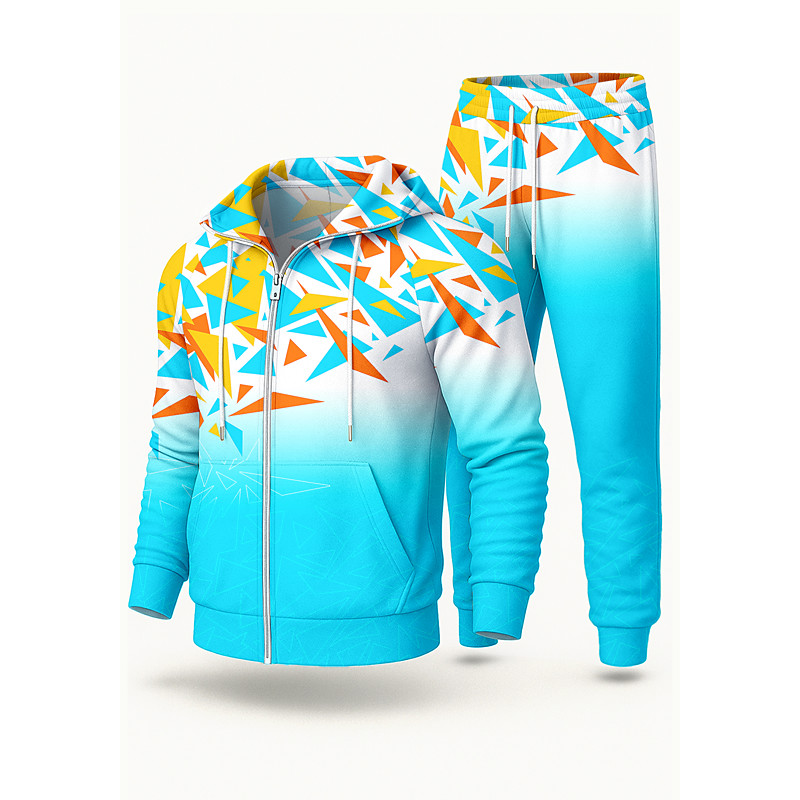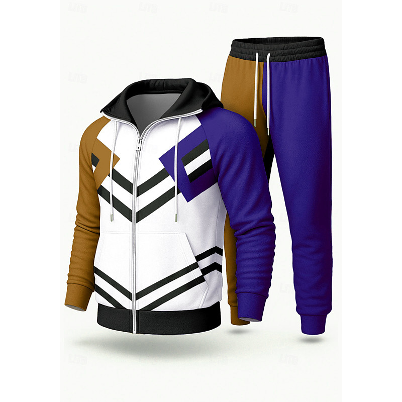 Men's Hoodie Tracksuit 2 Piece Tracksuit Drawstring Zip Up Geometric Clothing Suit Fall Blue Vocation Outdoor Travel Lightweight Fashion Long Sleeve Sport Activewear Stretchy Regular Fit