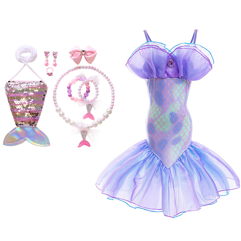 The Little Mermaid Little Mermaid Mermaid Tail Aqua Princess Dress Halloween Dress Cosplay Costume Theme Party Costume Cosplay Movie Cosplay for Girls' Kid's Carnival Masquerade