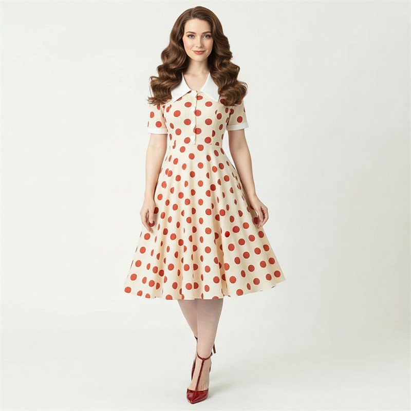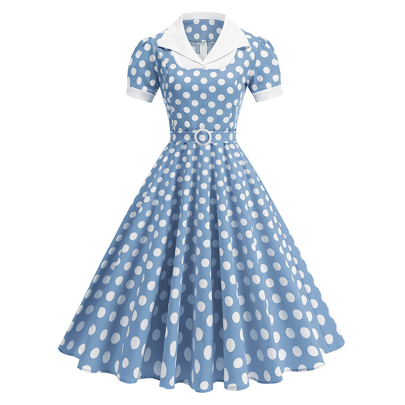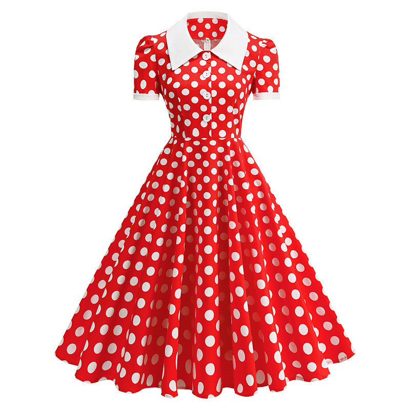 Retro Vintage 1950s Hepburn Midi Dress A Line Dress Flare Dress Short Sleeves Polka dots Fit Flare Fancy Dress Women's Carnival Valentine's Day Casual Homecoming Retro Theme Party Adults' Dress