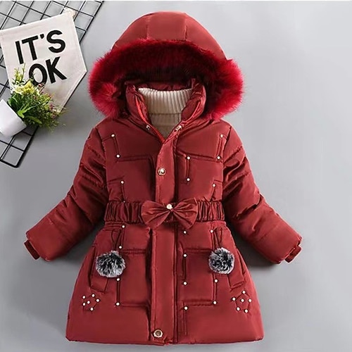 Bambino Da ragazza Piume Tinta unica Di tendenza Colletto di pelliccia Scuola Cappotto Capispalla 4-12 anni Autunno Nero Vino Blu marino