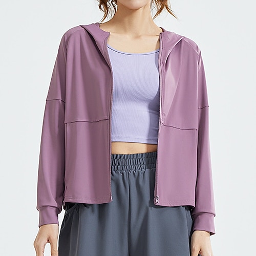 Per donna Giacca con Cappuccio Giacca da allenamento Leggero Manica Lunga Gli sport Tinta unica Top Per Palestra Atletico Corsa Vestibilità comoda Abbigliamento sportivo