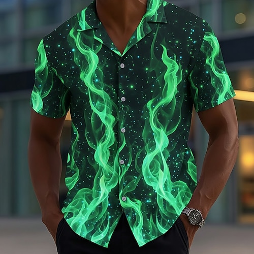 Per uomo Fiamma Bagliore al neon Camicia Camicia con Bottoni Manica Corta Moda Casual Abbigliamento casual alla moda Vacanza Estate Primavera Collo ripiegato Stampa 3D camicie con colletto Viola