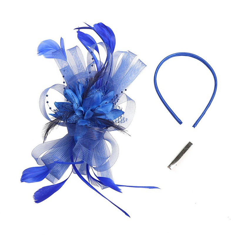 Fascinators Kentucky Derby Hat Feathers / Net Headbands / Flowers with Feather / Lace Side 1PC Fall Wedding / Horse Race Headpiece