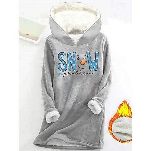 Damen Kapuzenpullover Buchstabe Warm Lässig Sherpa-Fleece Langarm Mit Kapuze Lange Oberteile Straße Alltagskleidung Lässig Druck Dunkelpink Grau Herbst Winter