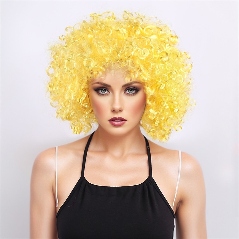 Carnival Wig Blonde Pink Red Afro Afro Curly Short Synthetic Festival Wig Mardi Gras Parade Cosplay Costume Hair for Women