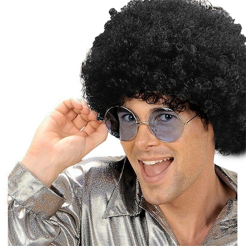 Carnival Wig Pink Red Black Curly Afro Short Synthetic Festival Wig Mardi Gras Parade Cosplay Costume Hair for Men