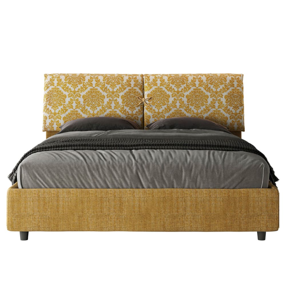 Letto matrimoniale contenitore 160x200 tessuto Agata 3 giallo