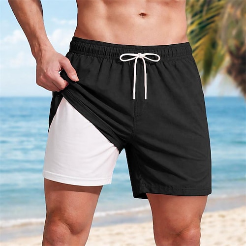 Per uomo Boxer da surf Pantaloncini da mare Boxer da mare Slip da bagno A cordoncino Vita elastica Tasca con cerniera Tinta unica Traspirante Asciugatura rapida Breve Informale Giornaliero Spiaggia