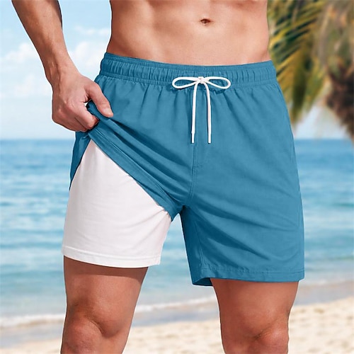 Per uomo 2pcs Costumi da bagno Pantaloncini da bagno boxer Shorts Tasca Elastico in vita Blocco di colore Semplice Tinta unita Traspirante Sopra il ginocchio Casuale Spiaggia Nuoto Vacanza Moda Blu
