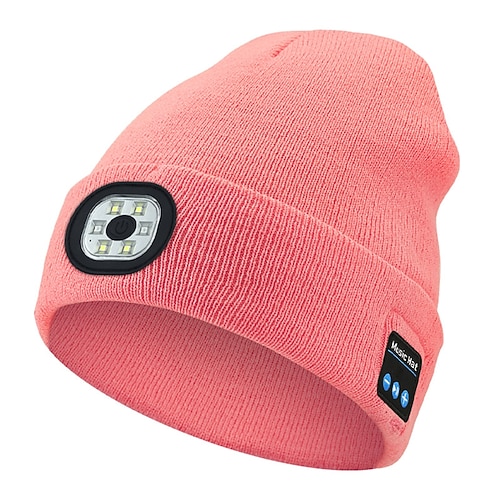 Kabellose Bluetooth-Musik-Strickmütze mit LED-Beleuchtung für den Außenbereich, leuchtende Weihnachtsmütze mit integrierten Kopfhörern, USB-wiederaufladbar, 1,5–3 W Netzteil, Batterie-Push-B-Funktion
