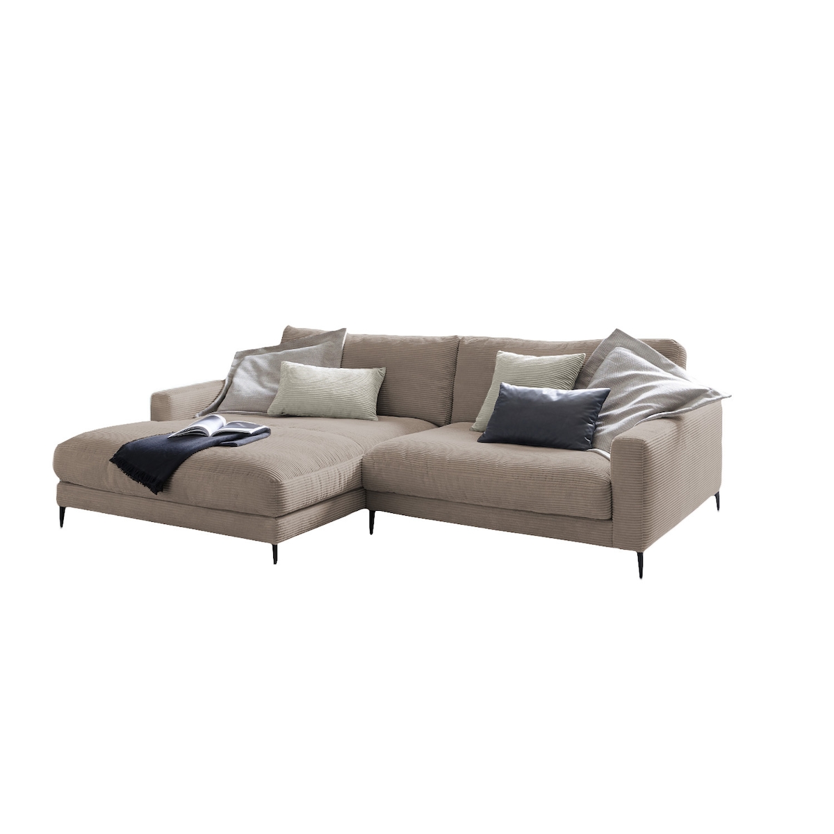 KAWOLA Ecksofa CARA Sofa Recamiere links Cord taupe