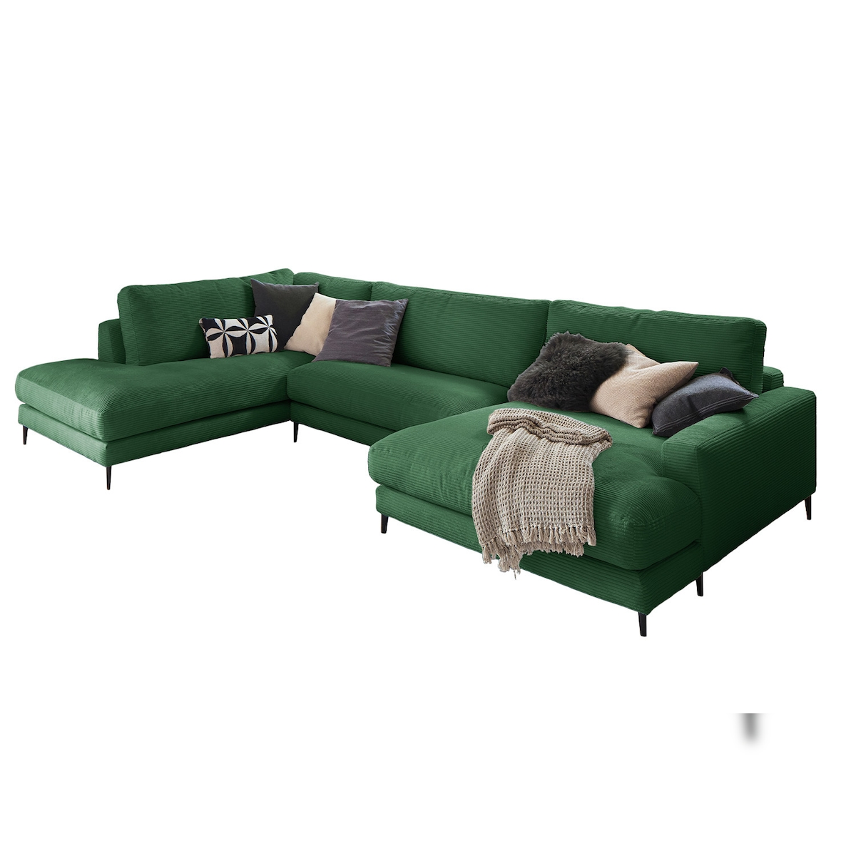 KAWOLA Sofa CARA Wohnlandschaft U-Form Cord smaragd Longchair rechts