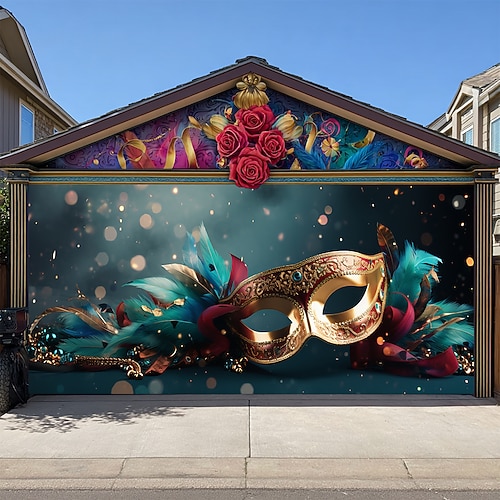 Martedì grasso Copertura per porta del garage Grande appeso Maschera Piume Lusso 3D Da serata All'aperto Sfondi di ripresa Porta d'ingresso Stile Carnevale di Venezia Arredamento per la casa
