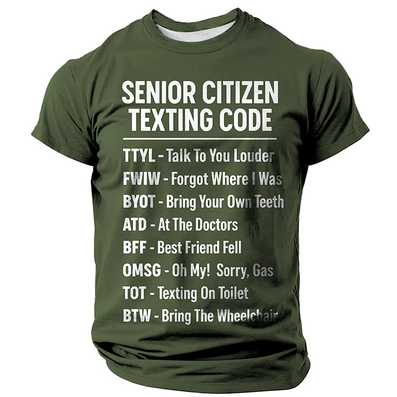 Funny Senior Citizen Texting Code Men's Short Sleeve Graphic T-Shirt Gag Gift