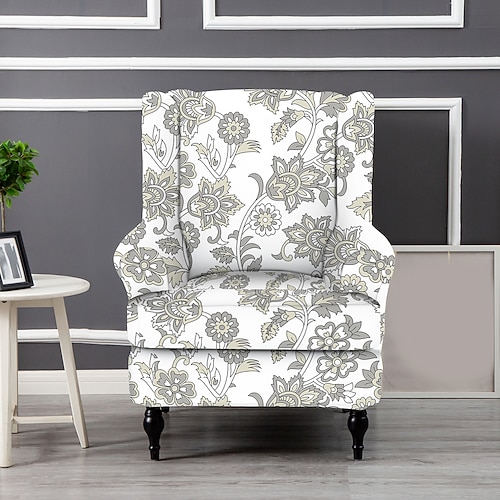 Copripoltrona con schienale alto, in poliestere con stampa floreale a righe e geometrica, per soggiorno, camera da letto e ufficio domestico