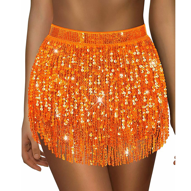 Carnival 2026Rio Carnival Samba Dancewear Sequin Skirt Sparkly Skirt Belly Dance Skirt Sequin Tassel Skirt Fringe Hip Scarf Women Brazil Festival Performance Costume