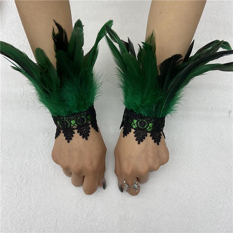 Carnival 2026Rio Carnival Samba Accessories Black Feather Cuffs with Lace Trim - Elegant Wristbands Gatsby Parties, Brazil Festival Performance Costume